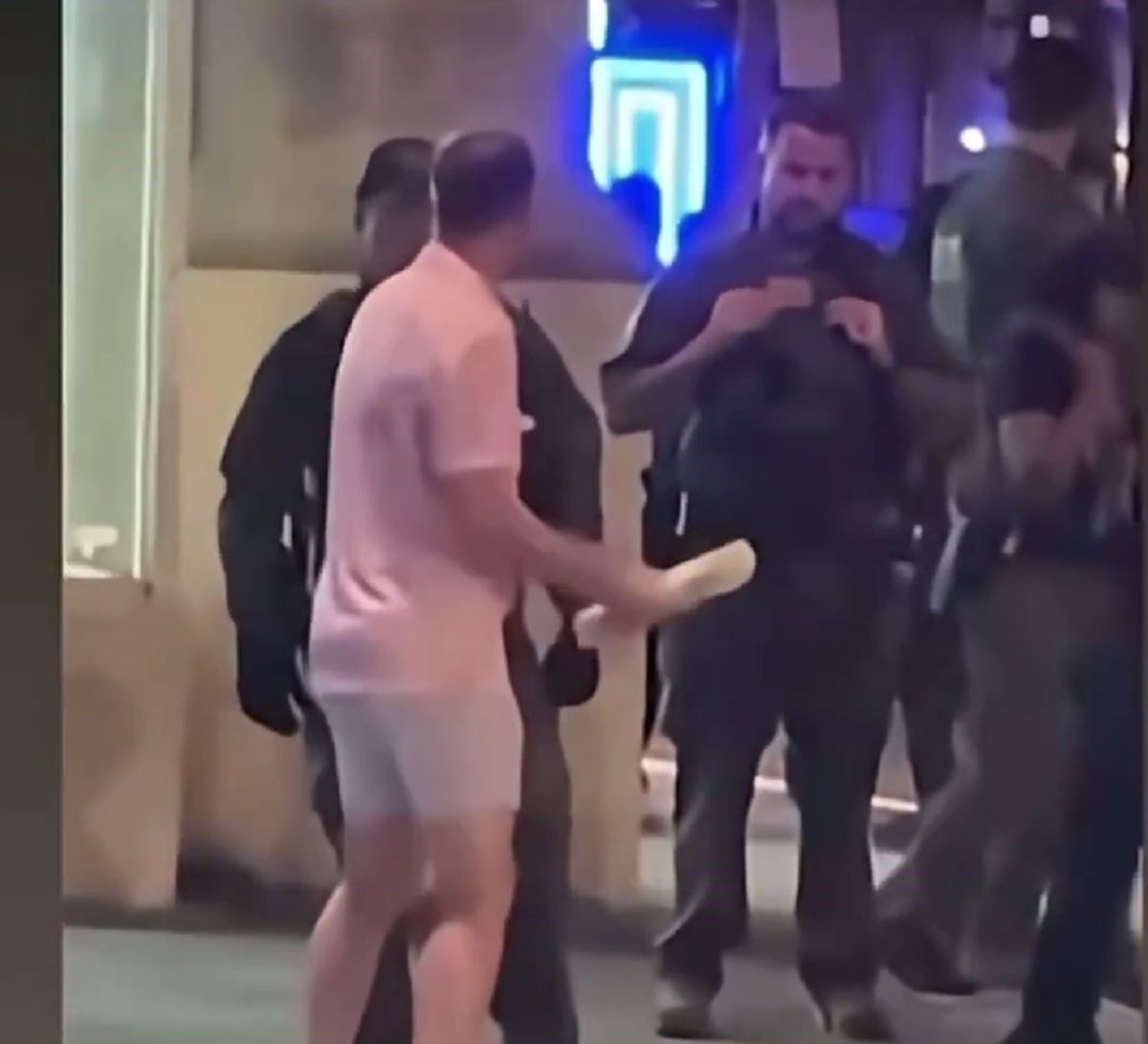 Nakon što se udaljio, ubrzo se vratio, bacio veliki sendvič i pogodio službenika u prsa. Potom je pokušao pobjeći, ali je ubrzo uhićen. Na ispitivanju je priznao incident: “Učinio sam to. Bacio sam sendvič.” Tereti ga se za napad na saveznog policajca.