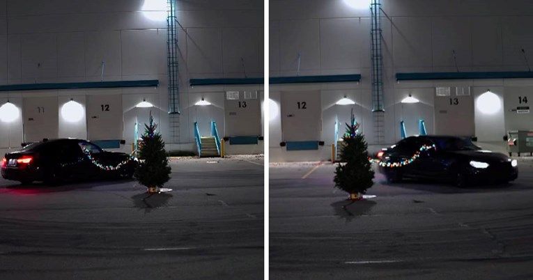 Na viralnoj snimci vidi se kako muškarac kroz otvoreni prozor automobila pridržava lampice dok se vozi u krug oko bora. Njegova preciznost i kontrola automobila omogućili su mu da ravnomjerno omota lampice oko drvca, stvarajući savršeno osvijetljeno božićno čudo.