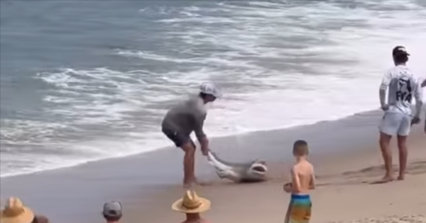 Snimka s mjesta događaja, koja se proširila društvenim mrežama, prikazuje kako muškarac uz pomoć još dvojice vuče morskog psa za rep duž plaže, sve do mora. Neposredno nakon što je pustio životinju natrag u vodu, počeo je šepati i zatražio pomoć.