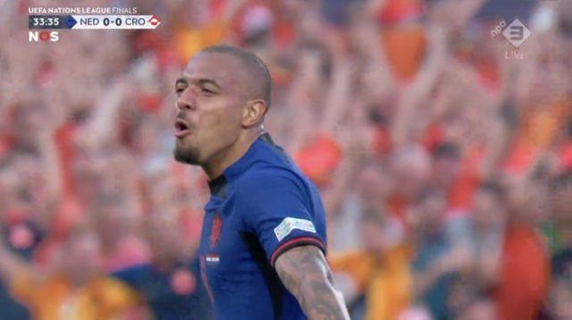 Nizozemska vodi 1:0. Strijelac je Donyell Malen. Odigrali su Nizozemci akciju po desnoj strani, a Wieffer je proslijedio loptu do usamljenog Malena na lijevoj. Nizozemski napadač neobranjivo je pogodio dalji kut Livakovićevog gola.