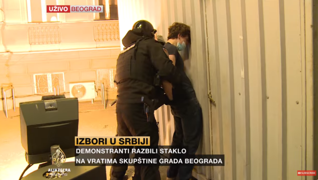 Jake snage srpske policije intervenirale su navečer ispred državnih i gradskih institucija u Beogradu, razbijajući postizborne prosvjede na koje je prije tjedan dana pozvala oporbena koalicija lijevog centra, optužujući vlast za krađu izbora.