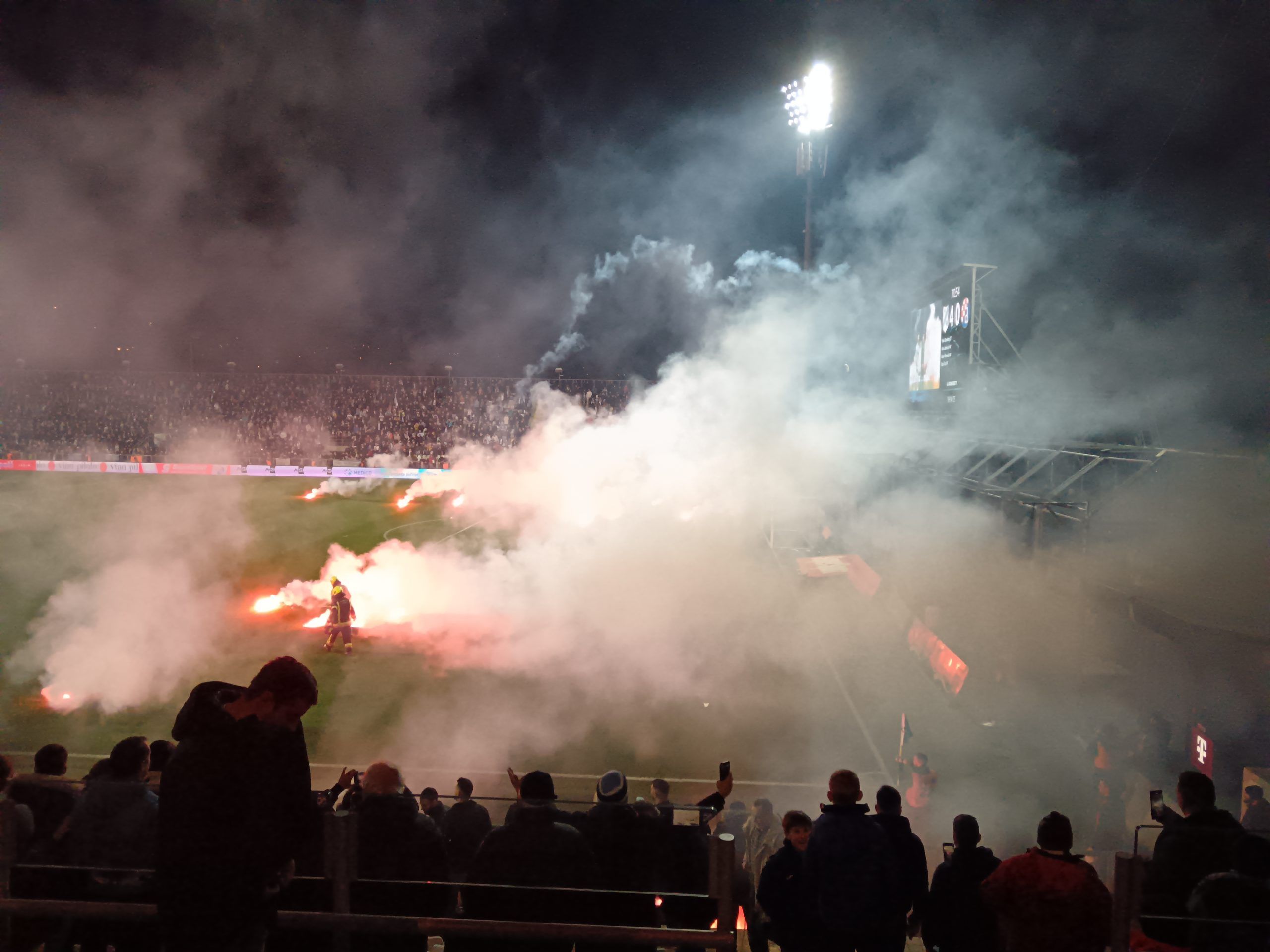 Home Sport Boysi prekinuli derbi na Rujevici! Sport Boysi prekinuli derbi na Rujevici! By dš - February 22, 2025 0 FacebookTwitterPinterestWhatsAppTelegram IMG 20250222 191412 Bad Blue Boysi su prekinuli utakmicu iskoristivši poluotvoreni kavez i bacajući baklje i stolice u teren. Navijači Dinama su bacali baklje i prema zapadnoj tribini, jedna je baklja skoro pogodila Zlomislića. Utalmica je nastavljena.