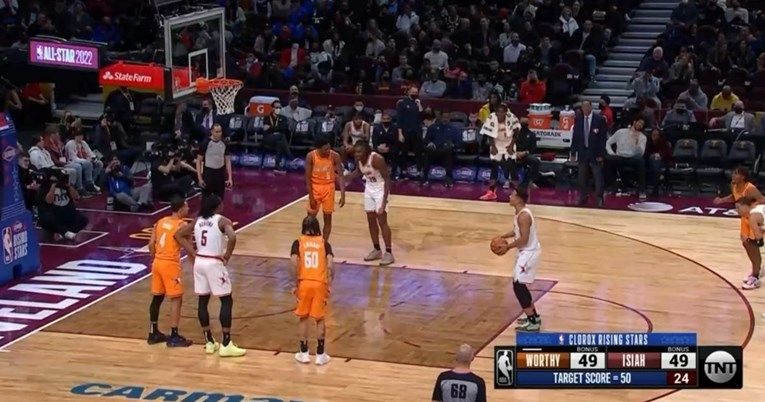 Pri rezultatu 49:49 Desmond Bane iz Memphis Grizzliesa trebao je pogoditi bacanje za pobjedu, ali Orlandov bek Cole Anthony pokušao ga je omesti na način koji se može vidjeti samo na All-Star vikendu – spustio je donji dio dresa i okrenuo mu stražnjicu.