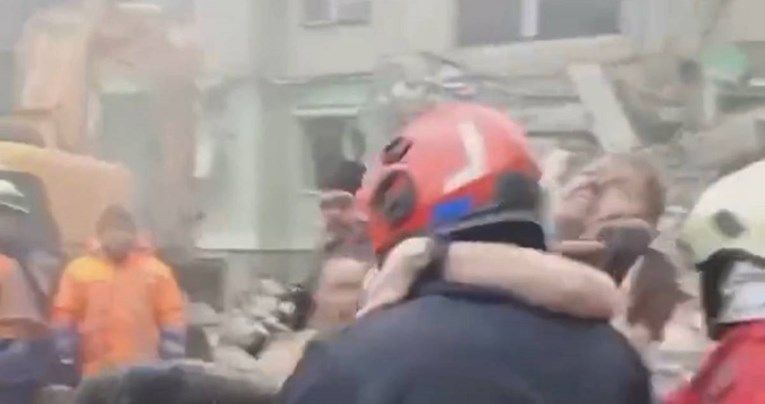 Na društvenim mrežama pojavila se snimka trenutka spašavanja žene iz ruševina zgrade koju su jučer u Dnjepru ruske snage pogodile projektilom.