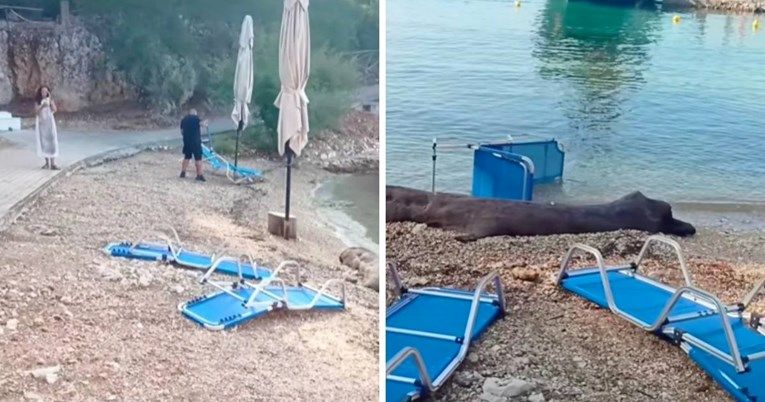 “Stavili su ležaljke na svetište”, rekao je Veljko u videu i pokazao spomen-ploču koja se nalazi iza plaže.