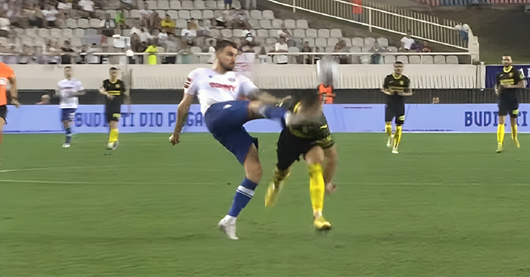 Utakmica je imala toliko dugu sudačku nadoknadu zato što je stoper Hajduka Zvonimir Šarlija u 90. minuti nogom u glavu udario napadača Istre Antu Ercega, kojem se potom ukazivala pomoć. Puljani su poslali dugu loptu na polovicu domaćina, gdje se Erceg borio s dvojicom suparničkih braniča. Lopta je poskakivala, a Erceg ju je pokušao glavom primiriti, pri čemu je tijelo spustio iznimno nisko. S druge strane, Šarlija je pri pokušaju izbijanja lopte snažno udario najboljeg gostujućeg igrača u glavu.