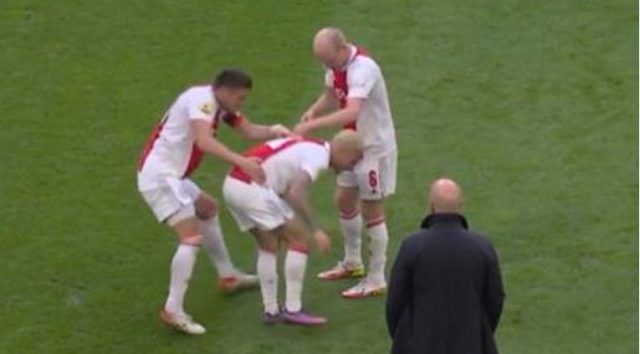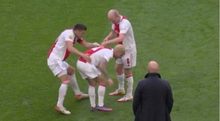 Međutim, u sudačkoj nadoknadi je na centru pao i uz bolnu grimasu odšepao s terena nakon oštrog starta suparnika. Ipak, odmah se vratio na teren, gdje ga je dočekao novi šok. Njegov kapetan Dušan Tadić tamo ga je s obje ruke bacio na pod. Činilo se kao da mu pokazuje da je trebao ostati ležati i ukrasti nešto vremena te tako približiti Ajax pobjedi.