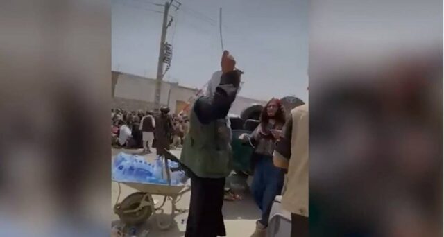 ‘Žene, djeca, stariji, osobe s invaliditetom s tisućama torbi ispred aerodroma. Talibanski vojnik s bičem. Snimila hrabra Afganistanka’, napisala je Hakim na Twitteru.