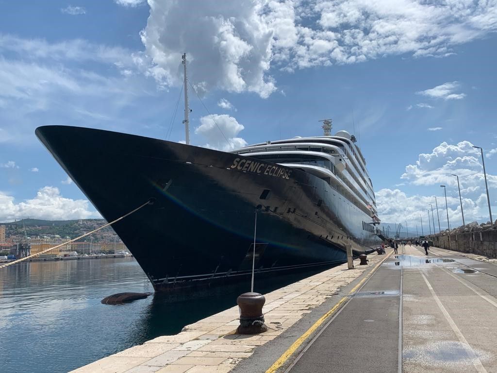 Scenic Eclipse, luksuzno plovilo s čak 6 zvjezdica namijenjeno izletima na oba zemljina pola, u vlasništvu australske Scenic grupe, jutros je, bez putnika, uplovilo u riječku luku gdje će ostati sve dok se situacija s koronavirusom ne smiri.