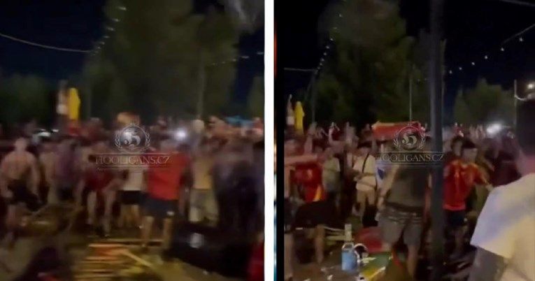 Spain🇪🇸 vs England🏴 Spanish fans cornering English fans in a fanzone in Croatia, Split, more photos, videos here: https://t.co/UsGzqGIbqP pic.twitter.com/FXFLmTkusF— Hooligans.cz Official (@hooliganscz1999) July 15, 2024