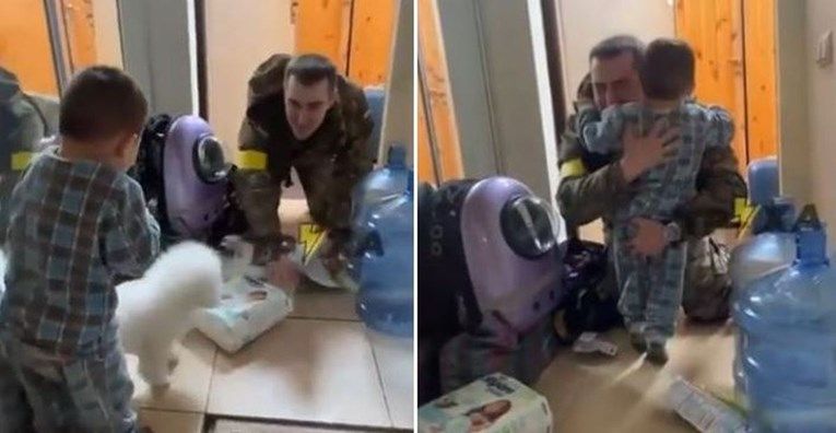 Otac mališana vratio se kući kako bi obitelji dostavio zalihe, a kada ga je dječak ugledao na vratima, odmah mu je potrčao u čvrst zagrljaj.