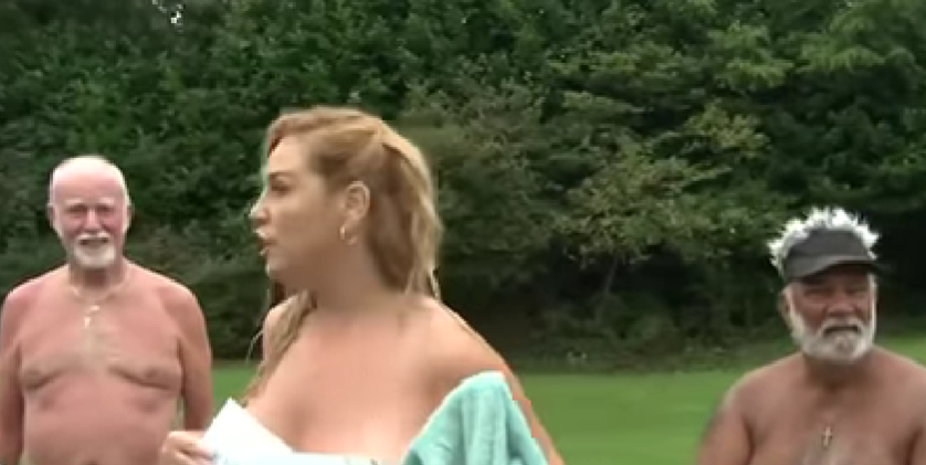 Tada se u novom kadru pojavila potpuno gola, praveći društvo drugim ljudima čije je intimne dijelove također zabilježila kamera.