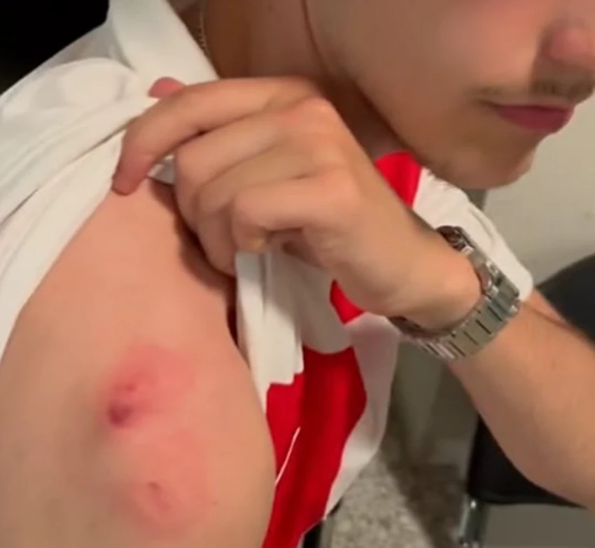 “UŽAS! Luka Ivanušec je nakon utakmice protiv Italije bacio dres mladiću @lenard_barisic u ruke, no troje stranaca istrgalo mu je sveti komad tkanine, a u borbi za njega jedna žena je krvnički ugrizla mladića za rame. Sve je prijavljeno policiji. EDIT: Javio nam se Ivanušec, novi dres stiže uskoro… A pravda će valjda ove dostići.”