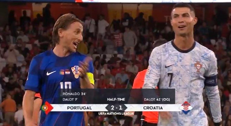 U utakmici prvog kola elitne skupine Lige nacija, Portugal je u Lisabonu svladao Hrvatsku rezultatom 2:1. Iako je rezultat na terenu bio u fokusu, pažnju ljubitelja nogometa posebno je privukla scena između kapetana dviju momčadi, Cristiana Ronalda i Luke Modrića, snimljena nakon završetka prvog poluvremena.