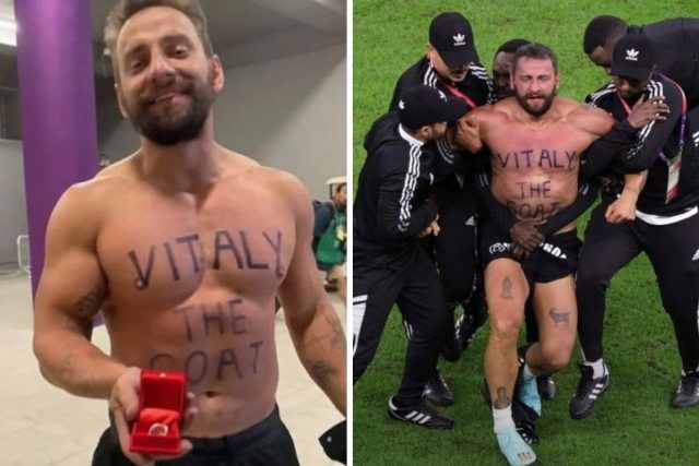 Vitaliju je to prvi put pošlo za rukom prije osam godina na Svjetskom prvenstvu u Brazilu kada je nekako uspio utrčati na teren tijekom finalne utakmice između Argentine i Njemačke i našao se u centru pozornosti svjetske javnosti.