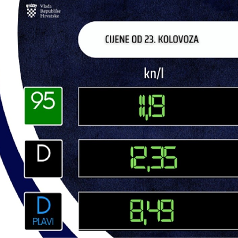 “Da nema mjera vlade, maloprodajne cijene naftnih derivata bi iznosile: 13.07 kn po litri za benzinsko gorivo, 14.82 kn po litri za dizelsko gorivo i 9.62 kn po litri za plavi dizel”, objavili su iz vlade.