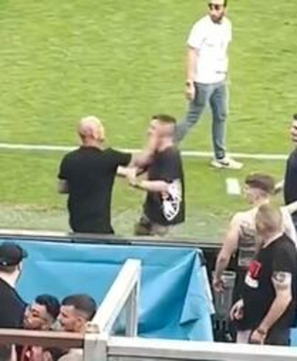 Udarce su usmjerili navijači zaduženi za navijanje, koji inače imaju status predvodnika, a snimku pogledajte u videu.