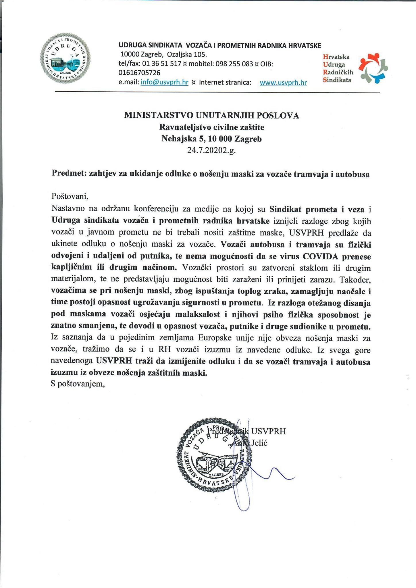 Odluka o obveznom nošenju maski u javnom prijevozu donesena je 25. lipnja, prilično naglo, takoreći preko noći, kao odgovor na skok broja novozaraženih uslijed otvaranja granica u namjeri spašavanja turističke sezone. Javnosti nigdje nije predočena nikakva analiza povezanosti tadašnjeg povećanja novozaraženih i nekorištenja maski u javnom prijevozu, niti se o tome vodila ikakva rasprava s pripadnicima prometne struke.