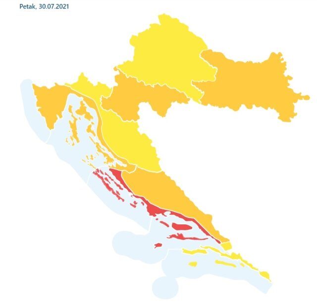 Danas i sutra je u Hrvatskoj vrhunac toplinskog vala. Zbog velikih vrućina sutra je za splitsko područje na snazi crveni alarm, dok je za ostatak zemlje na snazi narančasto upozorenje.