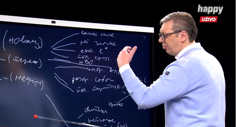 Predsjednik Srbije Aleksandar Vučić izjavio je u novom bizarnom istupu na Happy TV-u da cilj svega što neko iz inozemstva govori i radi, a “navodno je u vezi s izborima i stanjem demokracije u Srbiji”, slabljenje pozicije Srbije u pregovorima o Kosovu. Za vođenje hibridnog rata, odnosno kako je rekao “rata drugačijim sredstvima”, optužio je strane službe, nevladine organizacije, kao i domaće i strane medije.