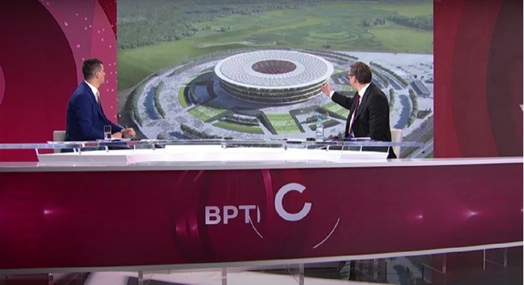 Vučić stalno povlači paralele s Bayernovim stadionom, a isto je napravio i govoreći o Nacionalnom stadionu u Beogradu: “Bit će na povoljnijoj lokaciji nego je slučaj s Allianz Arenom.” Voditelj mu je i tu kontrirao: “Ali, predsjedniče i Nacionalni stadion će biti u Srijemu. Sve najbolje i najnovije u Srbiji je tamo.