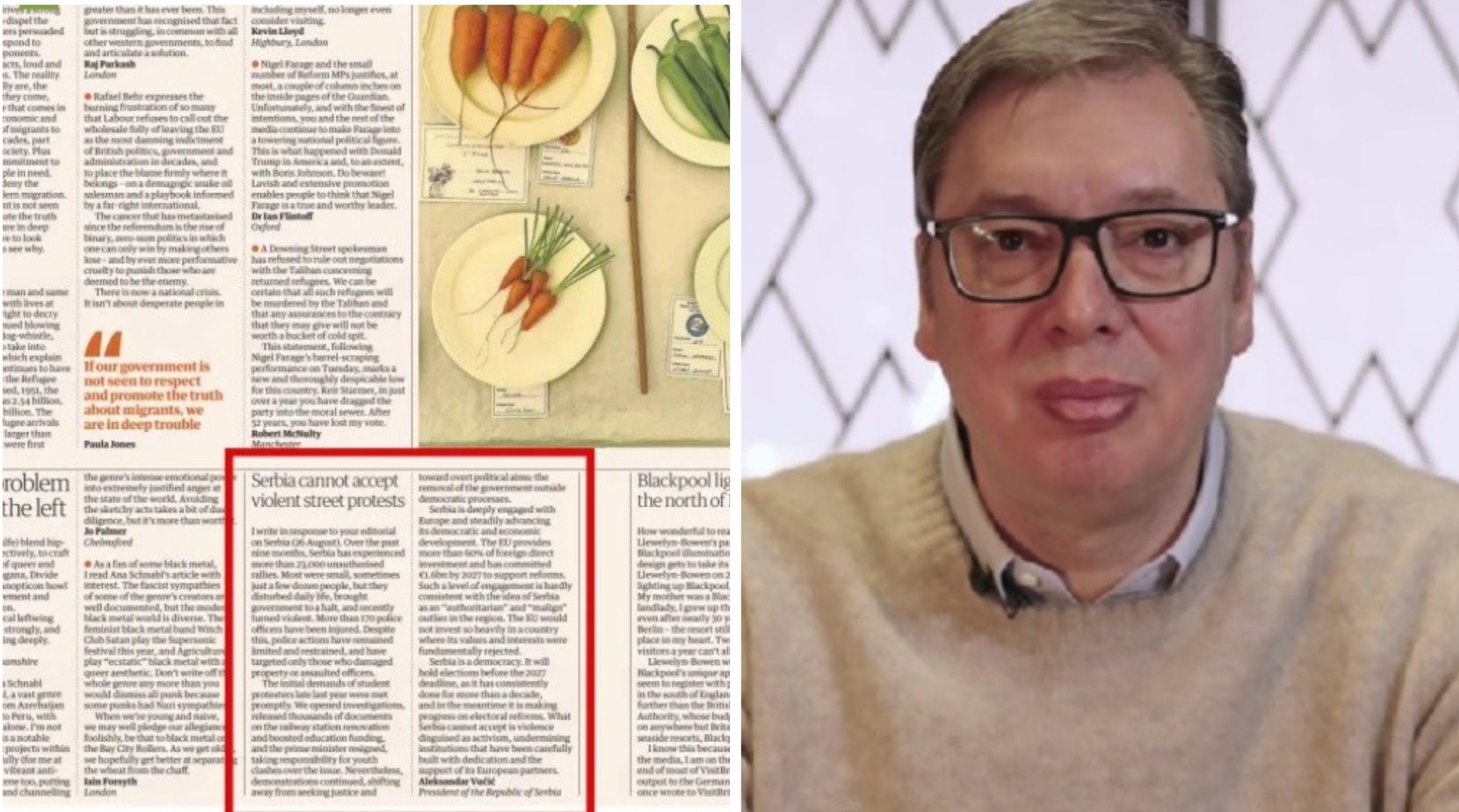 Predsjednik Srbije Aleksandar Vučić javno je reagirao na članak britanskog lista The Guardian. Njegovu reakciju list je objavio u rubrici “pisma čitatelja”, piše Nova.rs.