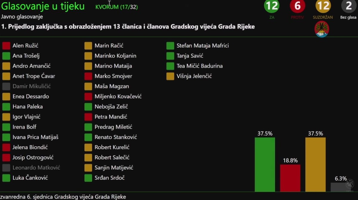 Na zahtjev vijećnika Možemo!, SDP-a, PGS-a, IDS-a, Liste za Rijeku i nezavisne liste Marka Filipovića u petak je sazvana izvanredna sjednica Gradskog vijeća kako bi se raspravljalo isključivo o tom zaključku. Za njegovo prihvaćanje glasalo je 12 vijećnika, protiv je bilo pet vijećnika HDZ-a i Petra Mandić iz Mosta, dok je suzdržano bilo preostalih 12 vijećnika koji podržavaju gradonačelnicu Rinčić. Ovakav ishod smo precizno u glas predvidjeli u tekstu na našem portalu objavljenom prije nešto manje od dva tjedna.