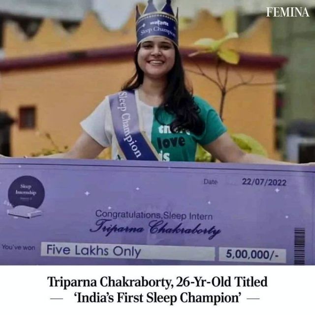 Triparna Chakraborty, a 26-year-old from Kolkata was awarded India’s first sleep champion.