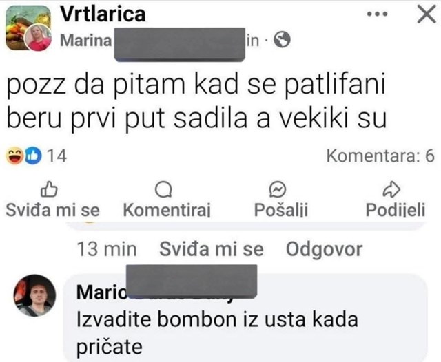 Home Mozaik Žena zatražila savjet o sadnji patlidžana u Facebook grupi, prvi komentar nasmijao... Mozaik Žena zatražila savjet o sadnji patlidžana u Facebook grupi, prvi komentar nasmijao sve do suza By m s - November 1, 2025 0 FacebookTwitterPinterestWhatsAppTelegram U grupi “Vrtlarica” više drame nego u turskoj sapunici…
