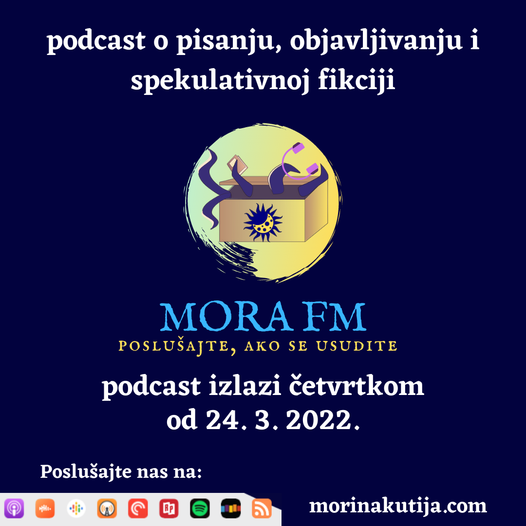 Mora FM podcast je koji se specifično bavi temama vezanim uz njihovo dugogodišnje iskustvo pisanja i objavljivanja, u nadi da će približiti taj proces novim autorima, ali i općenito o tome kako izgledaju različiti aspekti nastanka teksta, metode pisanja i uređivanja, priprema za objavu, pronalazak nakladnika, marketing, te ostale zanimljivosti koje se tiču autorskog života. Na podcastu se dotiču drugih autora čije uspjehe prate, trendove u fantastičnoj